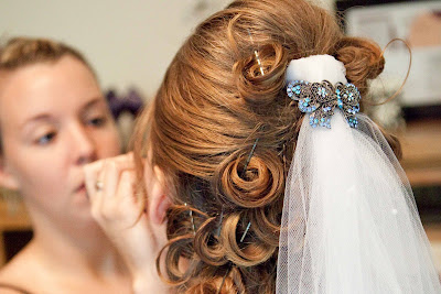 It's so much fun to get ready for a wedding and get all dressed up real pretty. When I got married, I had one friend help me with my hair and make up and that was it, but these days the bride and bridemaids all get together at the bride's home or church to put their make-up on and get dressed. Often moms and mother-in-laws join them. It's very much a GIRL time!